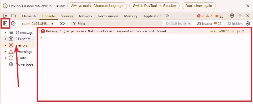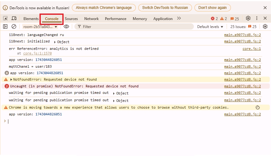 - Пришлите скриншот консоли разработчика и файл дампа WebRTC Вашему техническому специалисту.