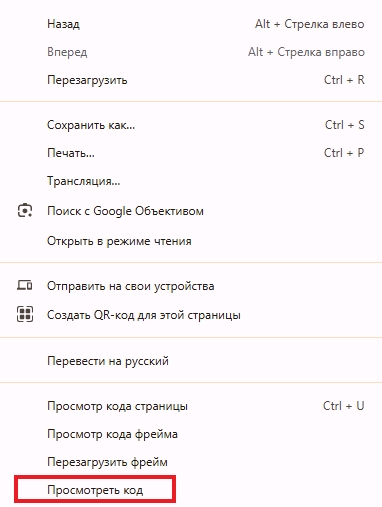 Правый клик мыши по любому элементу доски, выбор опции "Посмотреть код"