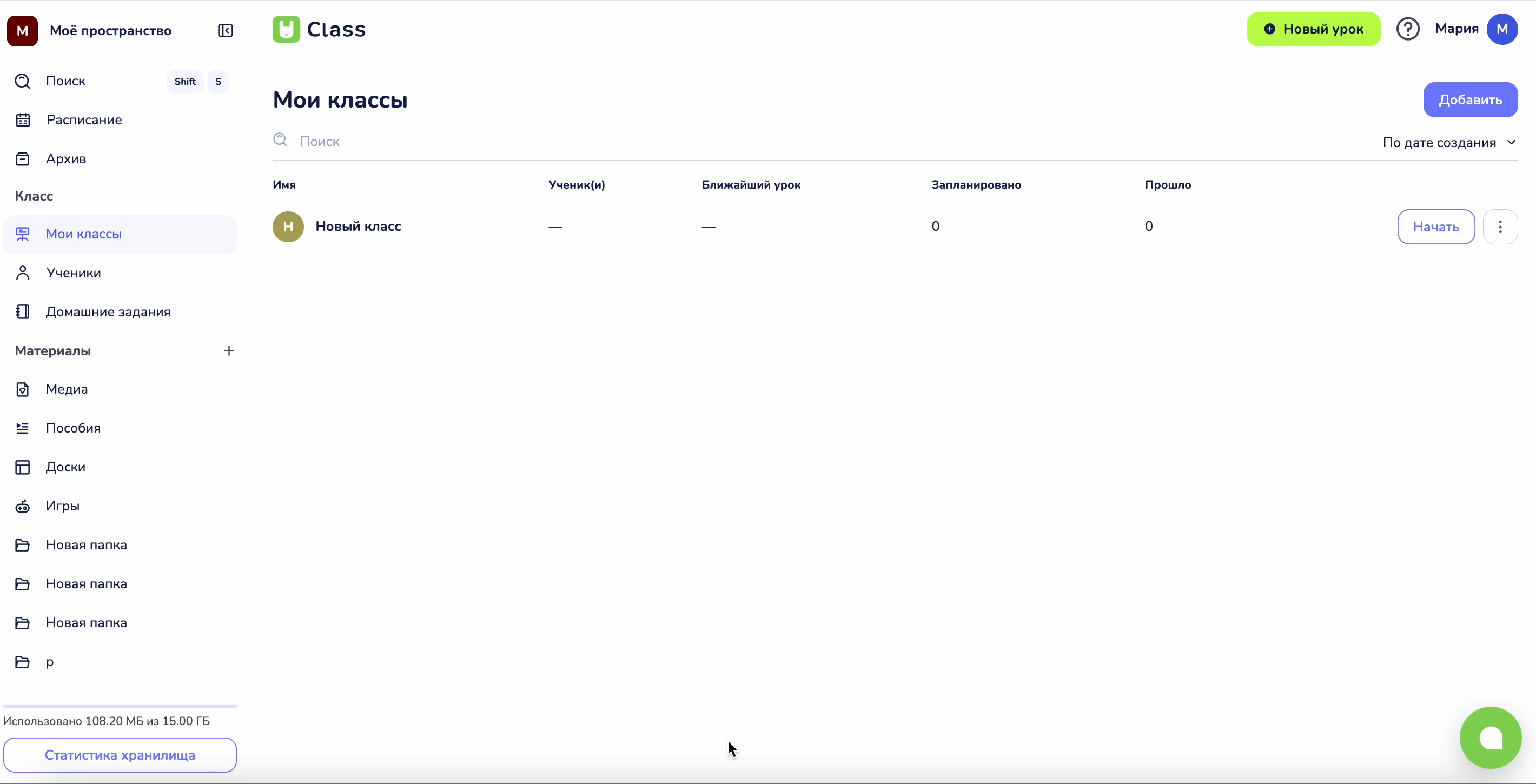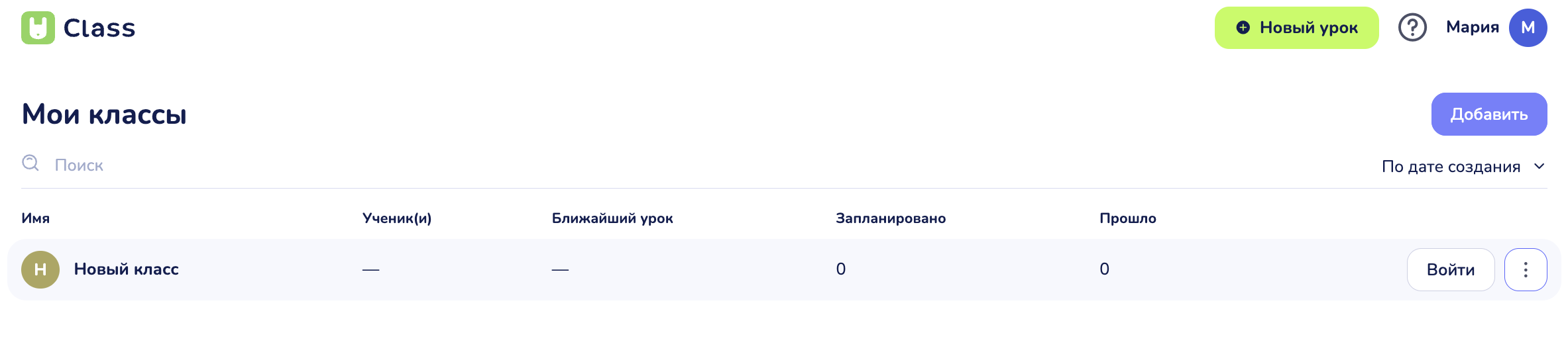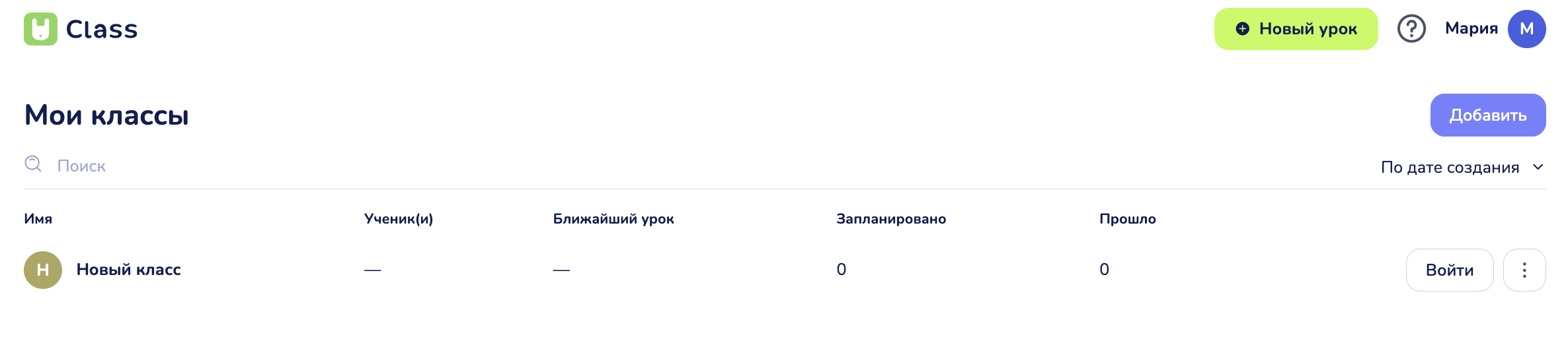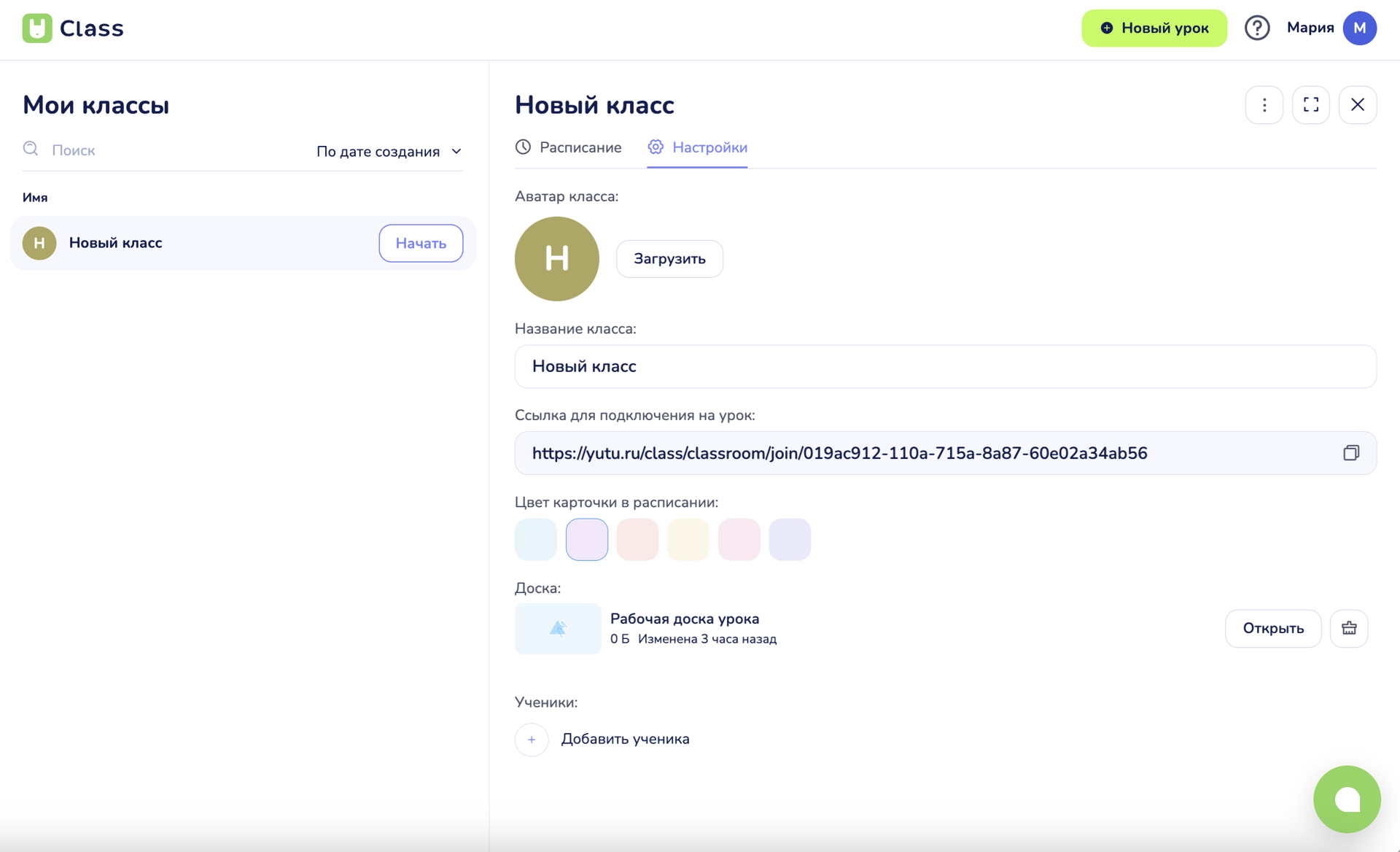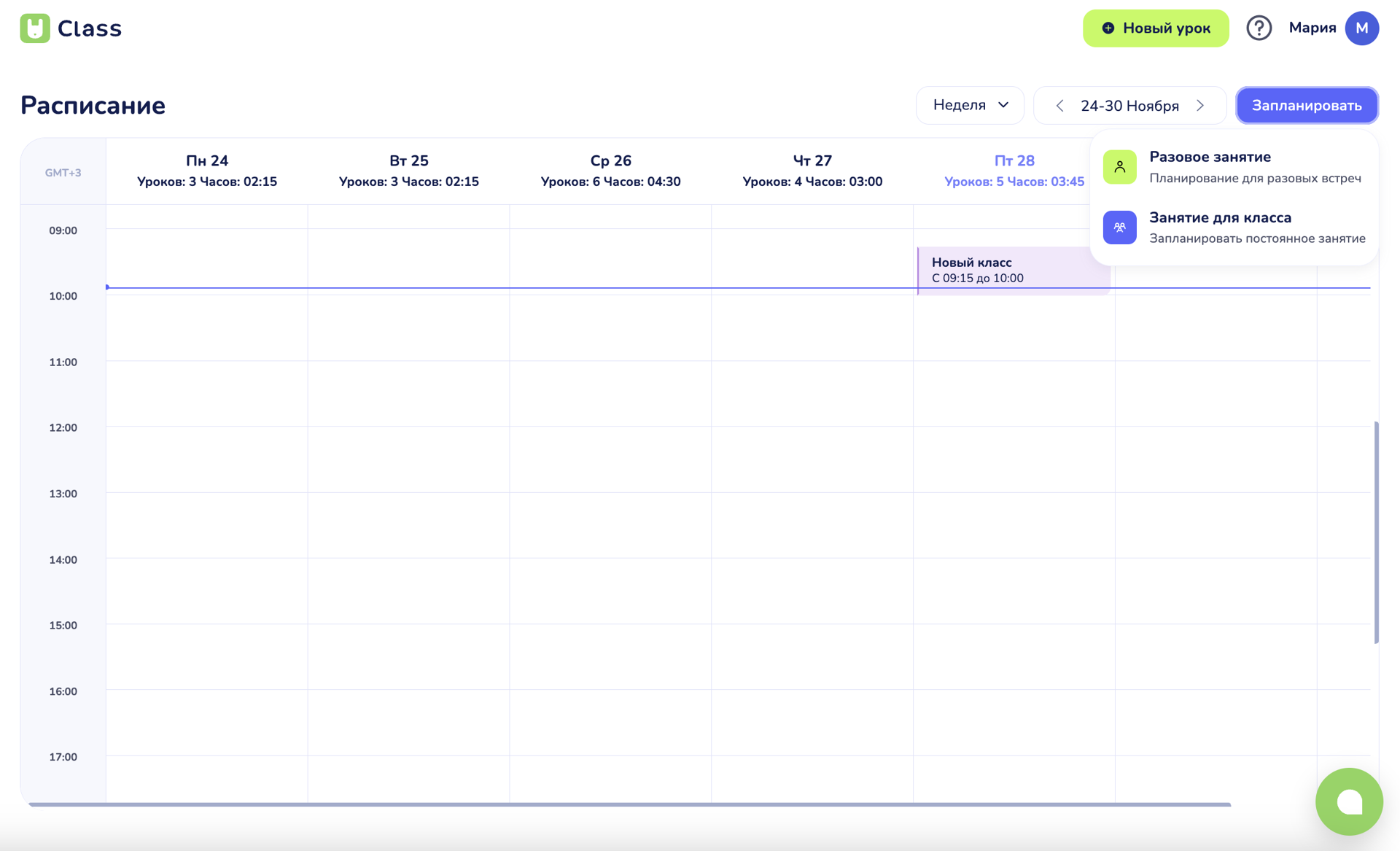 Важно! Для планирования постоянного занятия с классом требуется предварительно создать хотя бы один такой класс — он должен отображаться в таблице раздела «Мои классы».