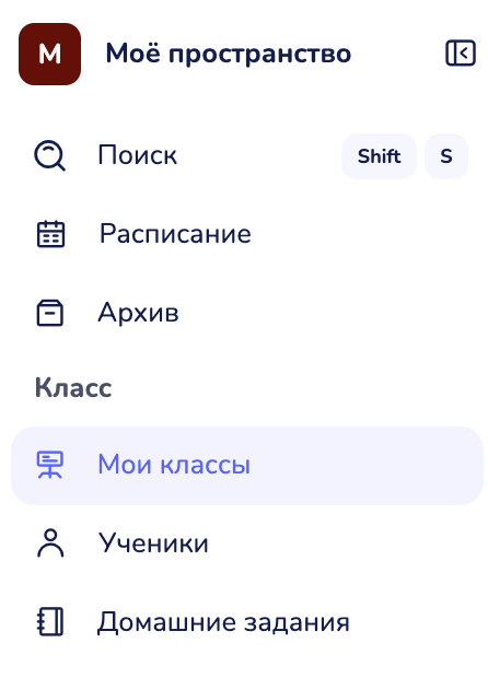 В боковой панели найдите и нажмите на раздел «Мои классы».
